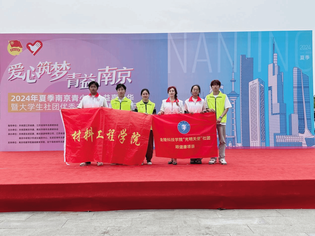 为进一步弘扬志愿服务精神,增强大学生与南京市的情感链接,团结带领广大青年学子在强国建设、民族复兴伟业中挺膺担当,共青团南京市委于2024年6月1日在金陵Style举办“爱心筑梦·青益南京”2024年夏季南京青少年公益嘉年华暨大学生社团优秀志愿服务项目展示活动,材料工程学院“光明天使”社团应邀参加。“光明天使”社团指导教师、材料工程学院视光工程系刘宜群教授,学院学生工作办公室主任许倩颖参加活动。